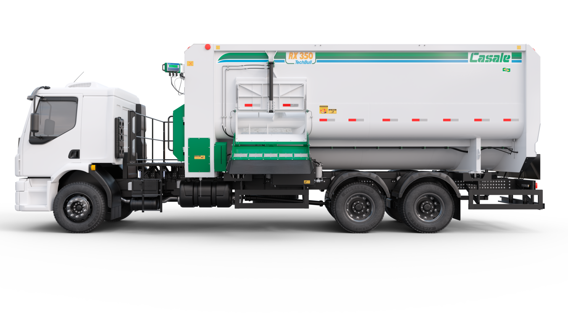Software inteligente antiquebra, alertas de sobrecarga e manutenção preventiva, além de controle automático das rotações para carregamento, mistura e descarga.